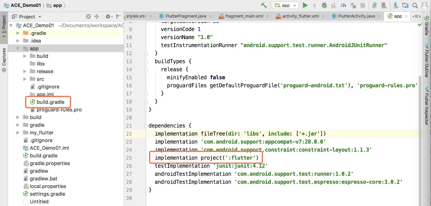 2. 在 app/build.project 中添加 Flutter 依赖;