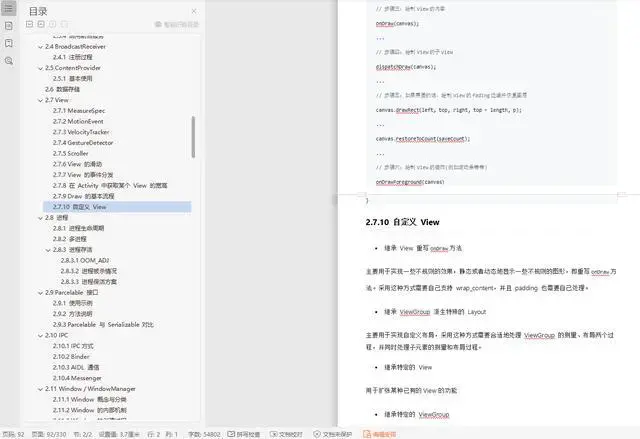 这里我特地整理了一份《Android开发核心知识点笔记》,里面就包含了自定义View相关的内容