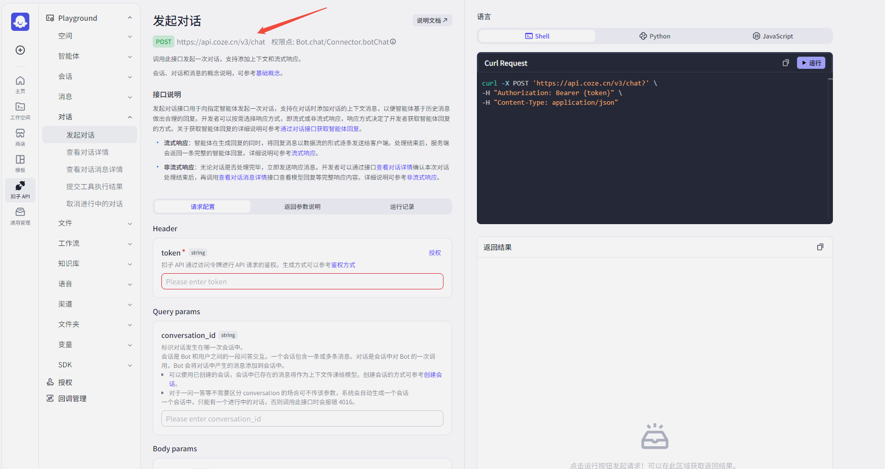 最重要的一步就是通过API调用接口了,扣子官方文档里其实有说调用接口的过程