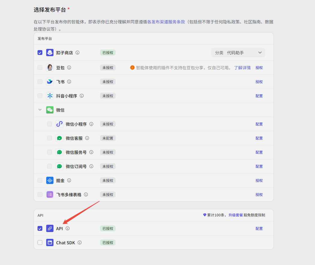 注意!发布的时候需要勾选API,否则可能无法通过API调用