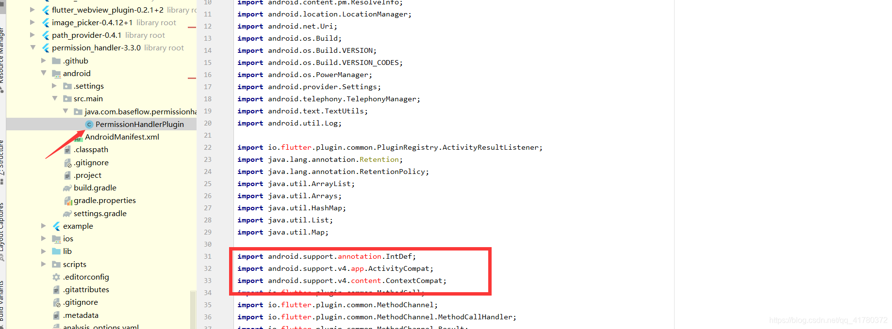 在项目引入了permission_handler: ^3.2.2后,项目出现报androidx而无法编译的情况,我最开始是想将项目转andoirdx,结果不成功,最好选择将androidx去掉。1.找到自己所引入的依赖,打开android目录。修改后修改前修改后修改前这个时候重新编译,会有如下错误我的做法是将报错的位置直接注释,比如上方576行出现错误,我就将这个代码块直接注释。因为我使用这个依赖