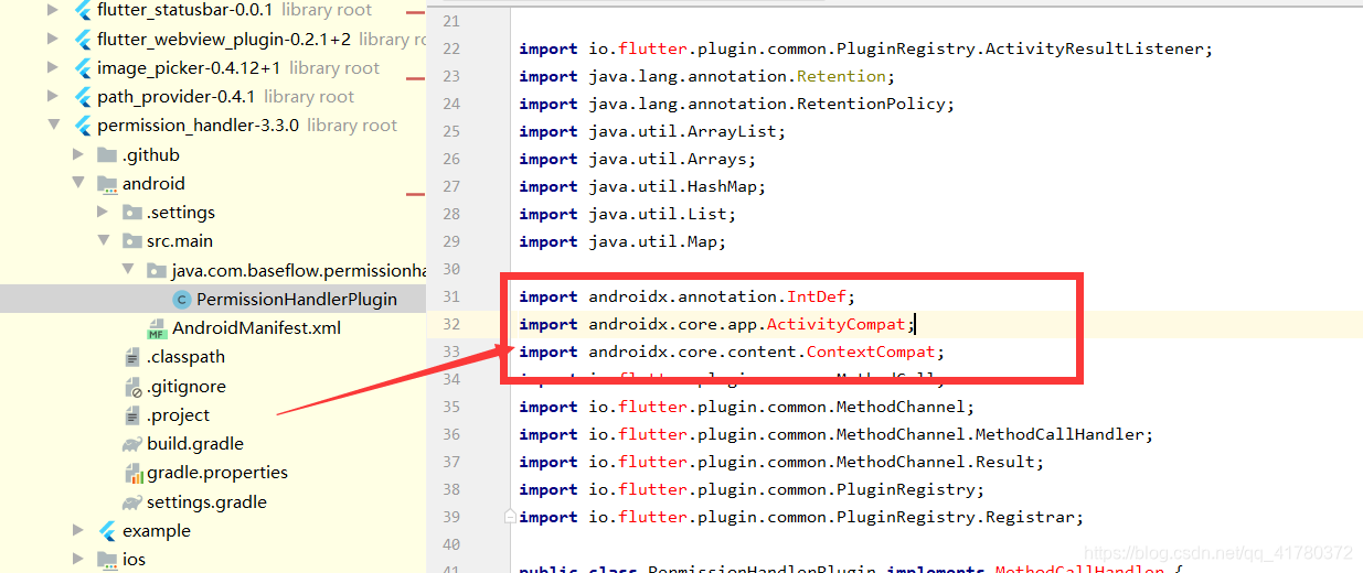 在项目引入了permission_handler: ^3.2.2后,项目出现报androidx而无法编译的情况,我最开始是想将项目转andoirdx,结果不成功,最好选择将androidx去掉。