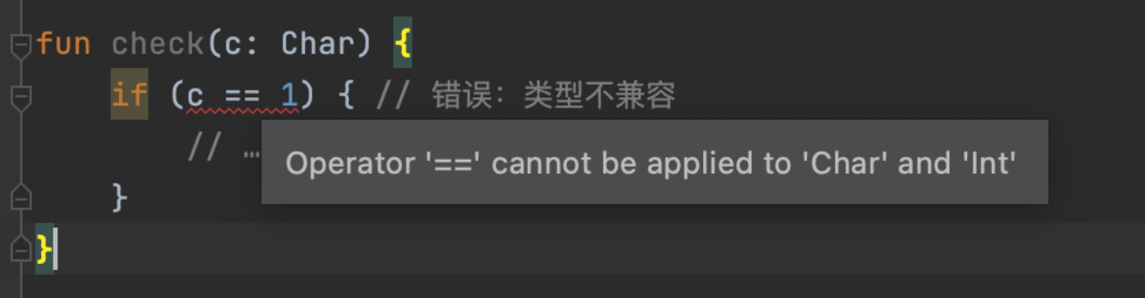 Kotlin和Java不一样,Char 不能直接和数字操作。Char 必需是单引号 ' 包含起来的。比如普通字符 '0','a'。