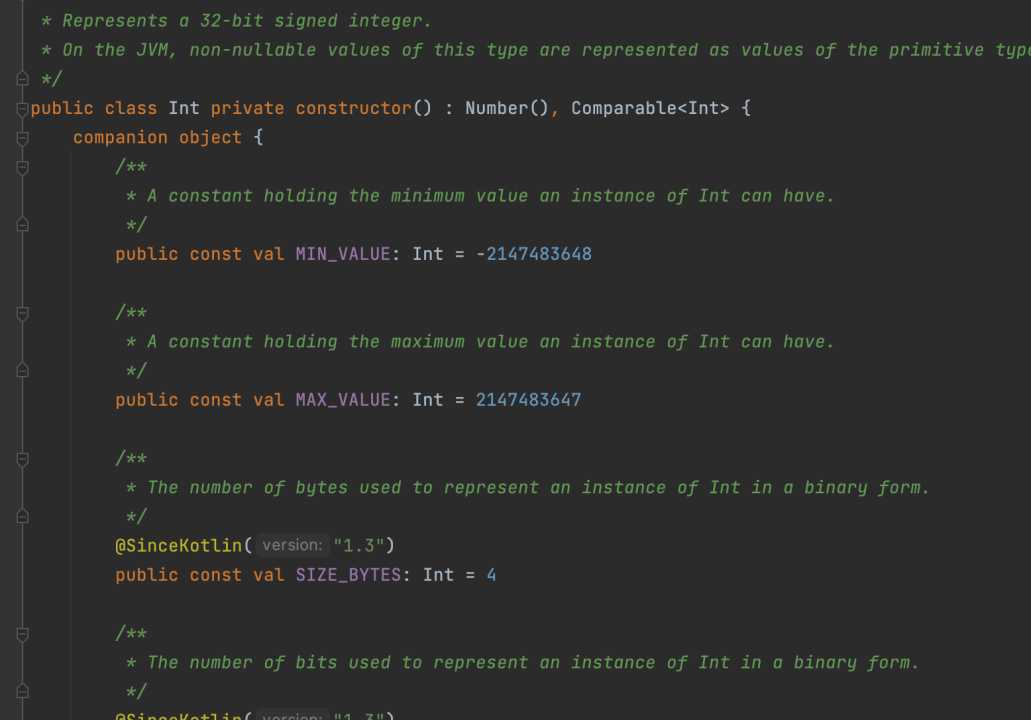 从表中不难看出,相同的数据类型,Kotlin的首字母都是大写,而Java的首字母都是小写,这一个小小的差别表示Kotlin完全抛弃了Java中的基本数据类型,全部使用了对象数据类型。比如在Java中int是关键字,Kotlin中Int则变成了一个类,有自己的方法和继承结构。