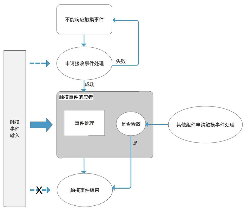 * 申请成功,组件成为了事件处理响应者,这时组件就开始接收后序的触摸事件输入。