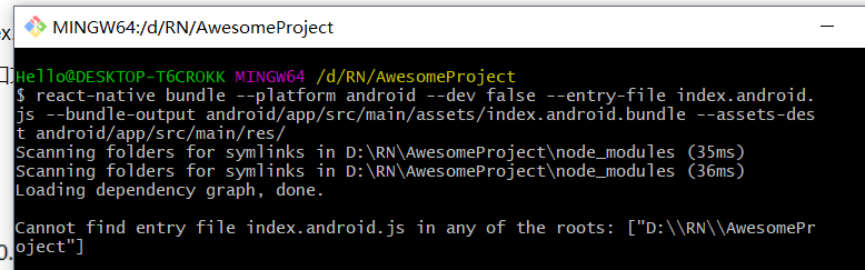 react-native bundle --platform android --dev false --entry-file index.android.js --bundle-output android/app/src/main/assets/index.android.bundle --assets-dest android/app/src/main/res