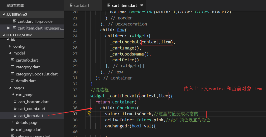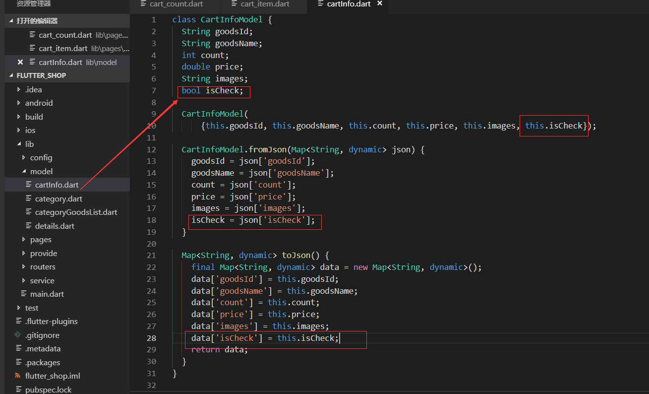 model/cartInfo.dart类增加是否选中的属性