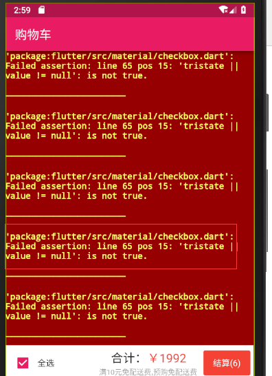 出现问题的原因,应该是在购物车内持久化的数据,没有isCheck这个新增加的属性,所以就报错了我们需要先点进去一个商品,把持久化的购物车数据清空掉,再重新添加购物车的持久化数据