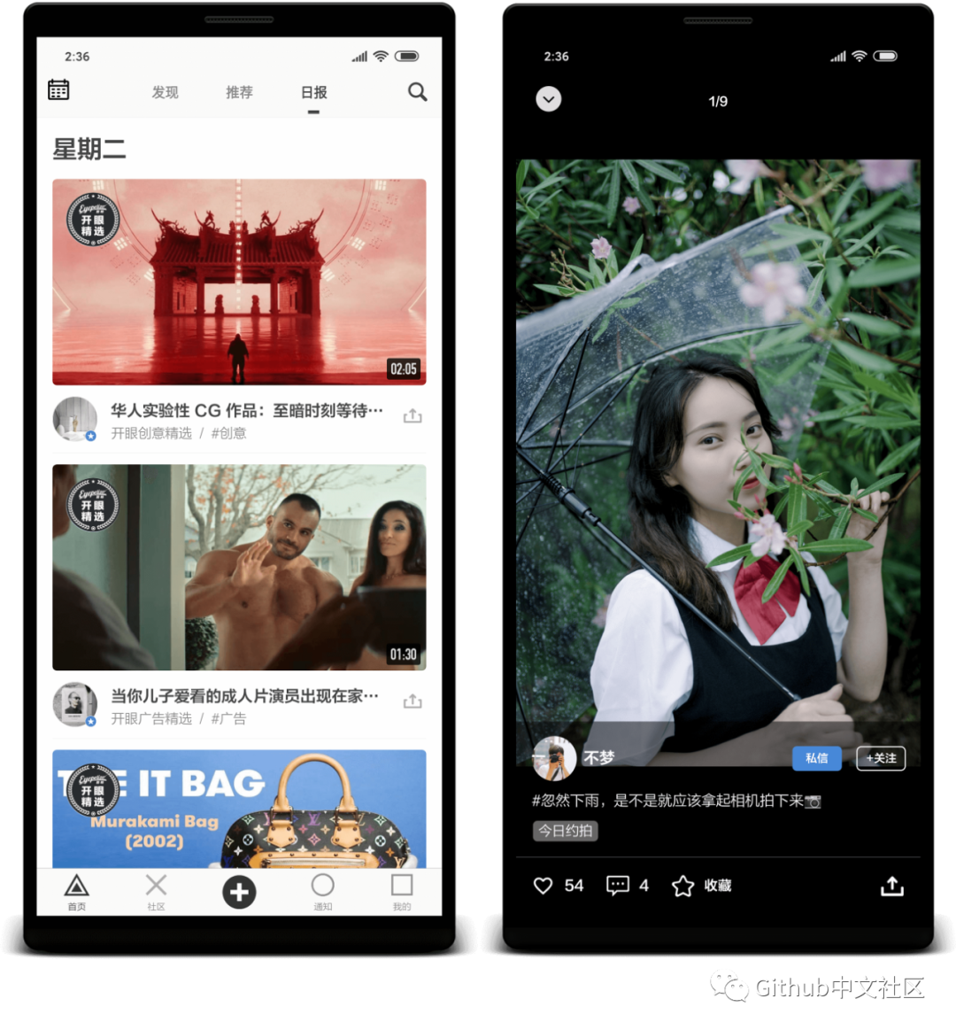 当我看到这个项目,第一感觉就是:这该不会是把人家开眼APP的源码给开源了吧?因为该项目太完整,颜值也很高,最后在我们仔细看过项目源码后,确定了是作者自己的作品,并且还发现很多亮点