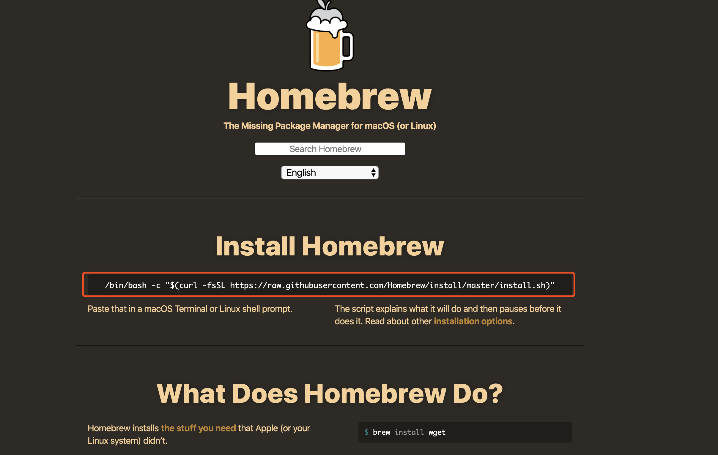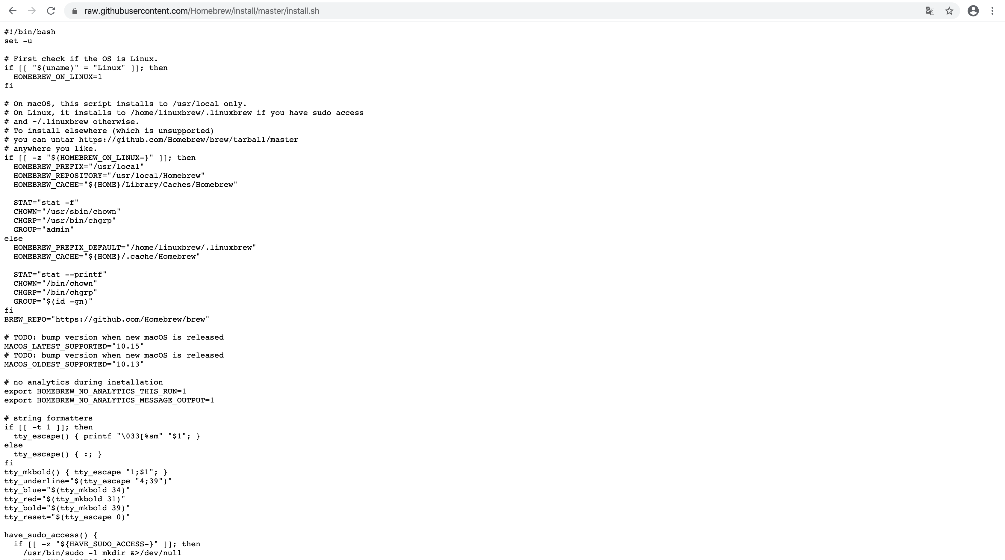 1.复制首页红框中的url到浏览器打开(需要梯子):https://raw.githubusercontent.com/Homebrew/install/master/install.sh