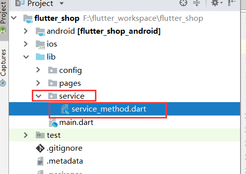 那我们尽力贴合大公司的开放流程,所以把这个文件也单独拿出来,便于以后扩展。 新建一个service文件夹,然后建立一个service_method.dart文件。