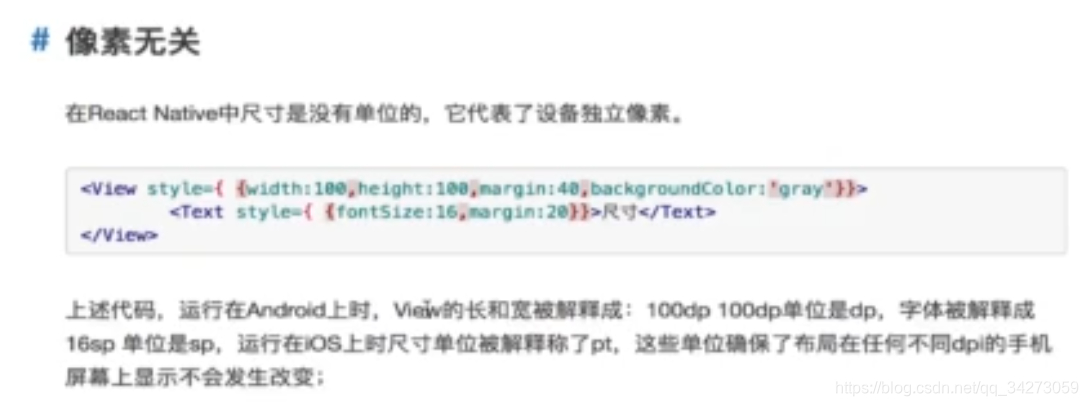 - react native中的尺寸是没有单位的,它代表了设备的独立像素