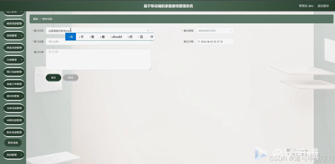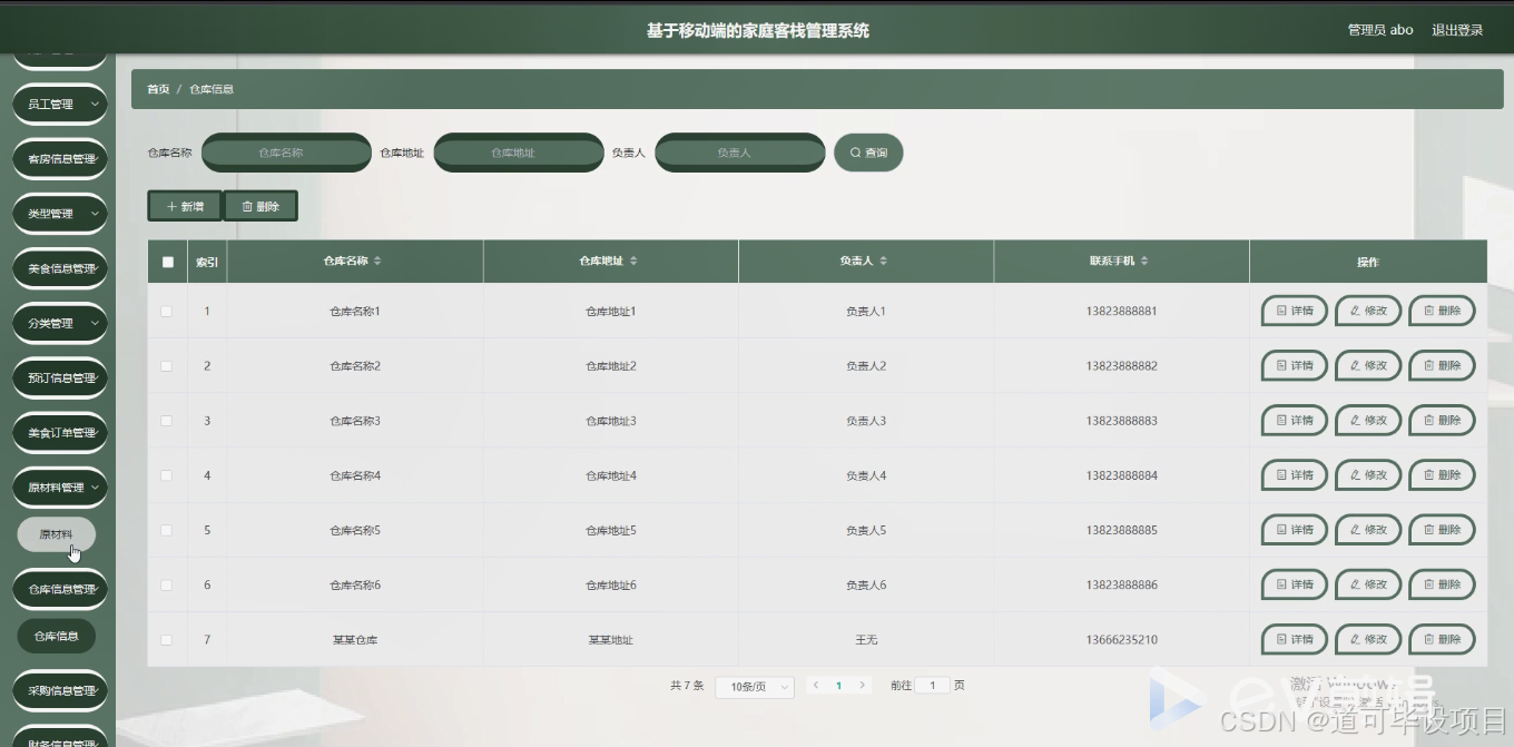 该系统具备完整的功能模块,包括用户管理、客房信息管理、美食信息管理、预订信息管理、原材料仓库和采购信息管理以及财务信息管理等,能够满足家庭客栈日常运营管理的需求。