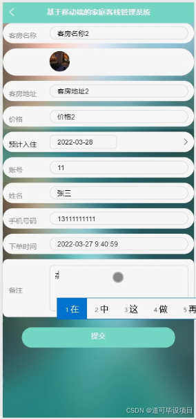 (一)完成基于移动端的家庭客栈管理系统的开发