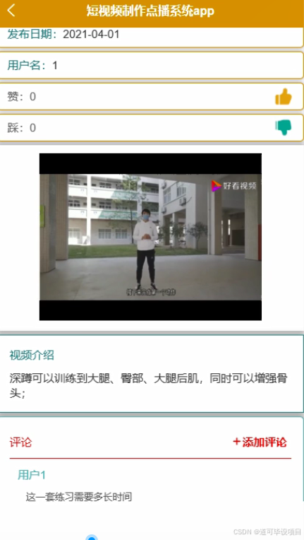 在部署阶段,前端编译生成的静态文件(HTML, CSS, JavaScript等)和后端编译的Java代码一同部署在Tomcat服务器上,从而使得整个Web应用能够在服务器上运行并被用户访问。通过精准的视频分类和详细的视频信息展示,用户能够更高效地找到自己所需的视频内容,节省时间成本,同时也能发现更多优质的短视频资源。同时,该app还将提供便捷的短视频制作功能,鼓励用户参与到短视频的创作中来,进一