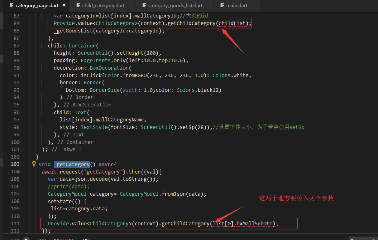 我们修改了上面的多传递了参数以后,那么category_page.dart页面地方就会报错了。