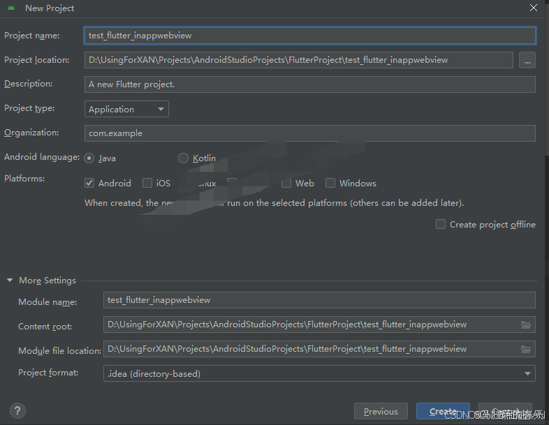 2、创建一个 application 的 Flutter 项目