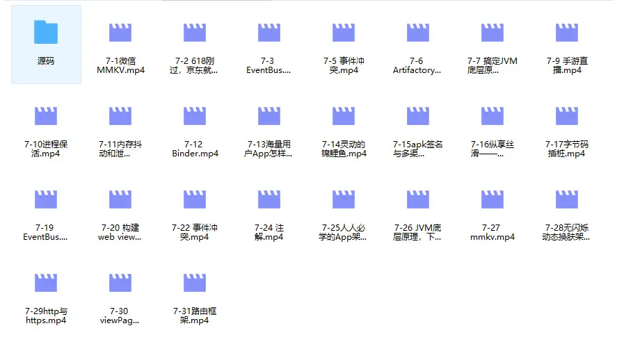 关于视频这块,我也是自己搜集了一些,都按照Android学习路线做了一个分类。按照Android学习路线一共有八个模块,其中视频都有对应,就是为了帮助大家系统的学习。接下来看一下导图和对应系统视频吧!!!
