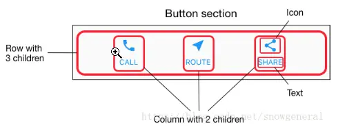 第二行,我们称其Button section,同样有3个子组件:由三列组成,且每列均由一个图标和文本组成。