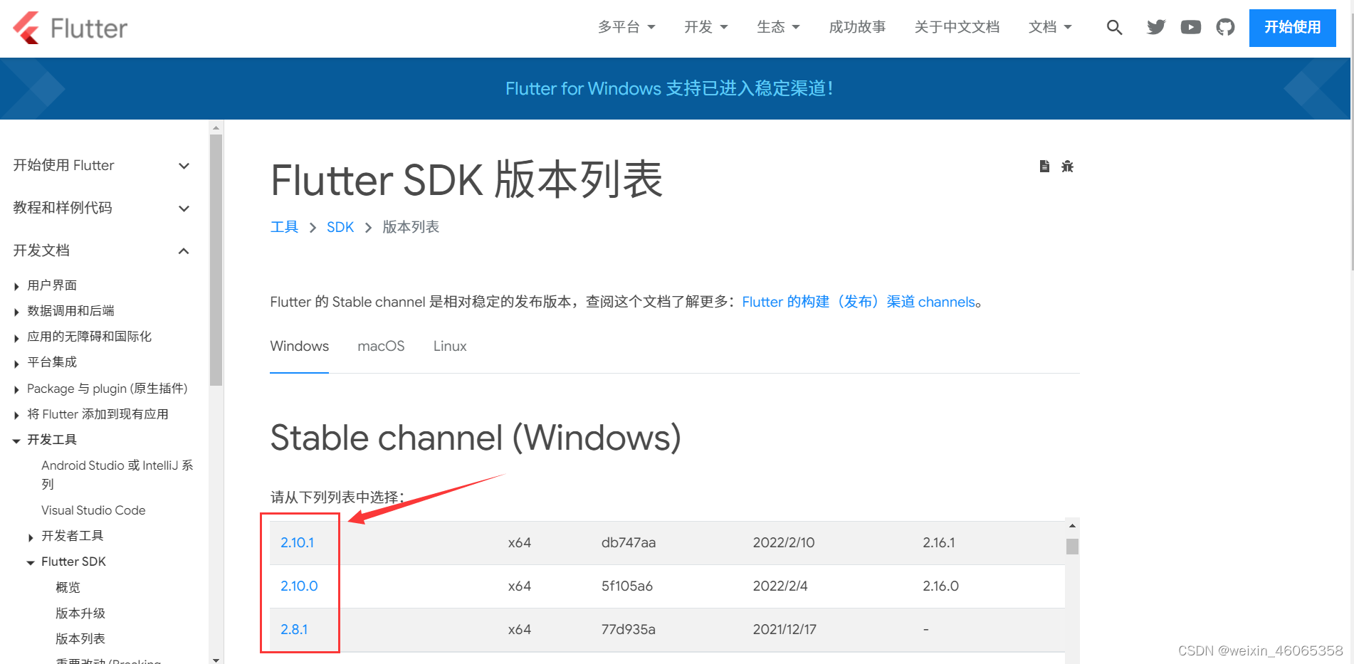 【网址】Flutter SDK 版本列表 | Flutter 中文文档 | Flutter 中文开发者网站