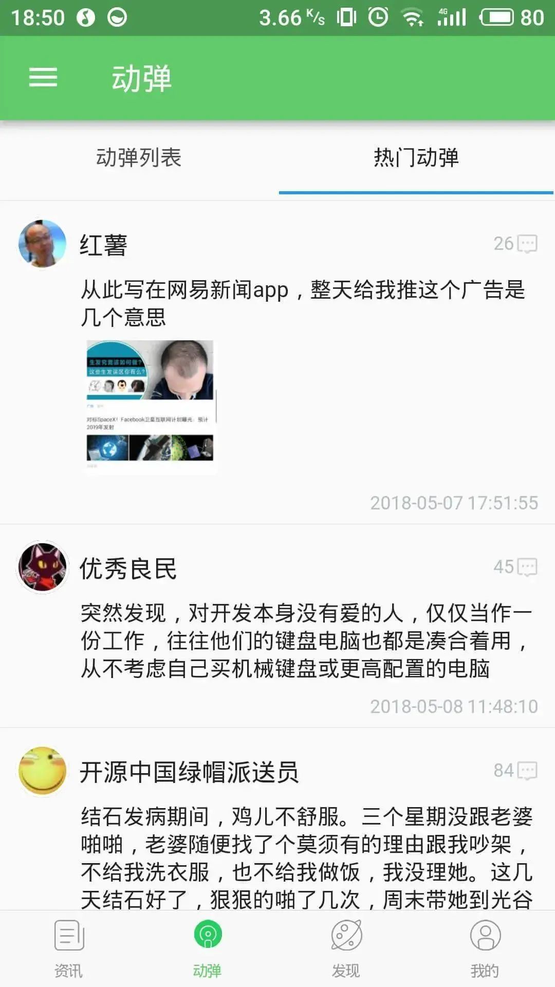 资讯列表、动弹列表、评论列表支持下拉刷新或分页加载