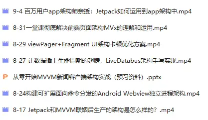 对于很多初中级Android工程师而言,想要提升技能,往往是自己摸索成长,不成体系的学习效果低效漫长且无助。 整理的这些架构技术希望对Android开发的朋友们有所参考以及少走弯路,本文的重点是你有没有收获与成长,其余的都不重要,希望读者们能谨记这一点。