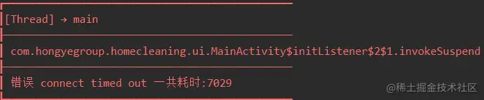 出错的信息,这次网络请求确实是通了,确实是走到 timeout 里面了。