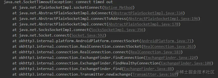 就算我们在 buildAndConfigureConnection 中设置了超时时间,但是 connect 方法直接就报错了,也不会走timeout的逻辑