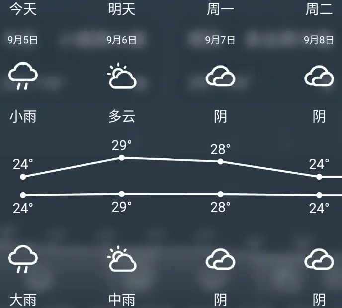 上下的文字区域绘制根据各自高度顺延绘制即可,只要预留出中间折线的绘制区域即可。中间的折线区域又可以继续平分成 top 和 bottom 两个折线,各自绘制各自的,互不干扰。折线图的绘制思路分为三步:找出最大最小值、计算单位温度的 y 值和遍历绘制1. 遍历找出 top 和 bottom 的最大最小值