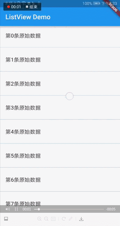 Flutter给我们提供了下拉刷新功能RefreshIndicator的组件,先整体说明一下下面Demo的代码逻辑,其实很简单,body返回一个RefreshIndicator组件,在该组件内的子组件是一个ListView,重点说一下RefreshIndicator的下拉回调方法onRefresh,在回调方法内延迟2秒中后将list内容清空,并且重新给list列表添加新的数据。