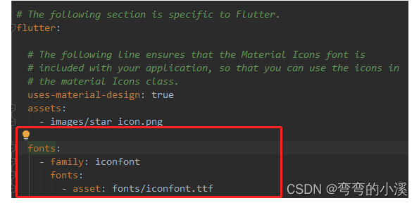 2、在pubspec.yaml文件中导入tff文件