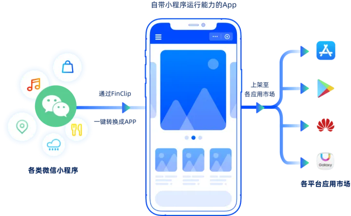 - 促进连接。只要把FinClip SDK嵌入到自己的App中,马上获得小程序运行能力。小程序已经在互联网上被充分证明是一个非常有效的促进连接的技术形态。