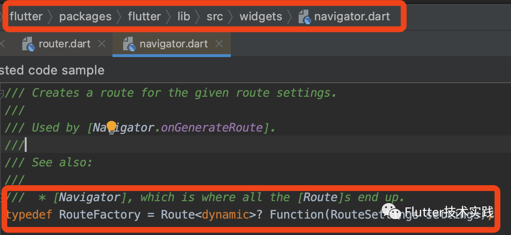 查看 onGenerateRoute 的源码定义可以看到,根据所给的 route settings 来返回一个 Route<dynamic>。