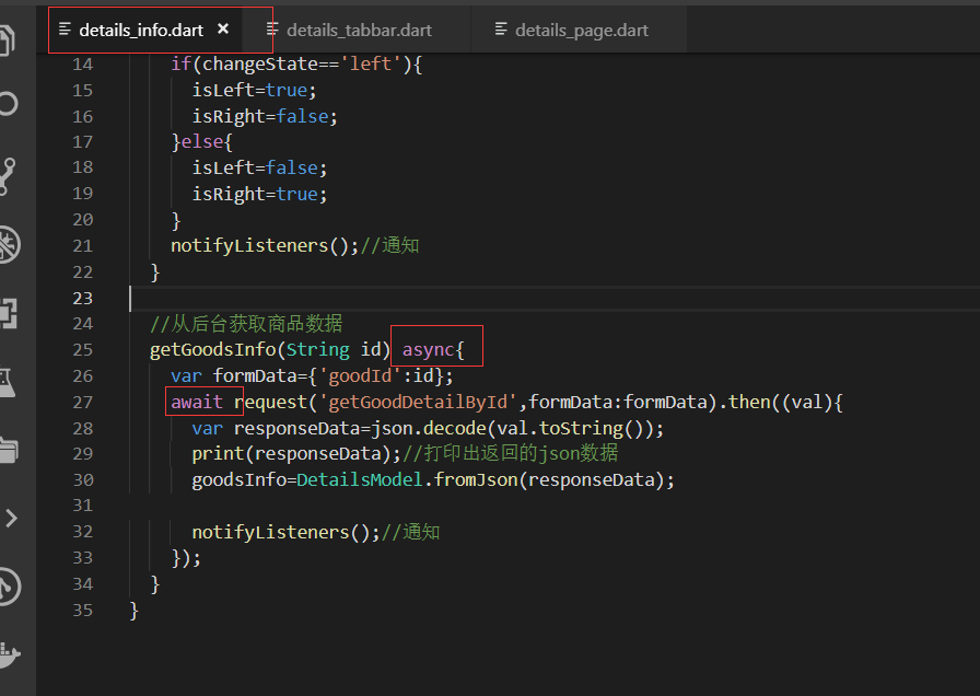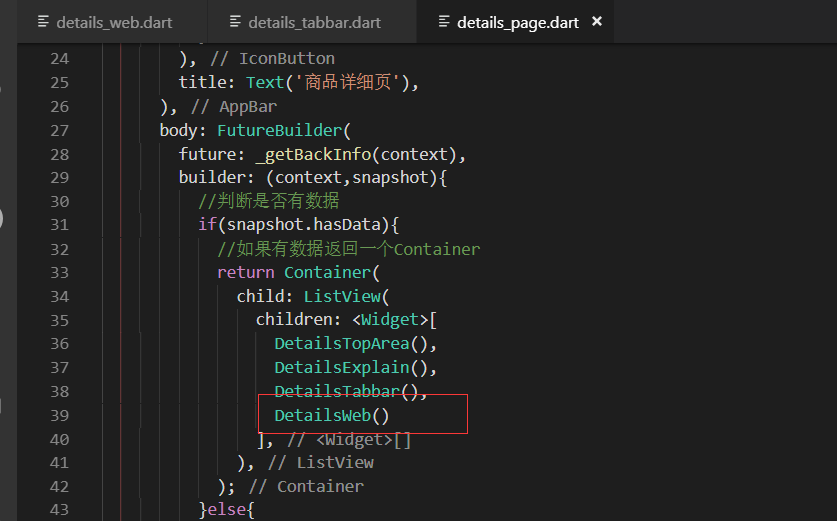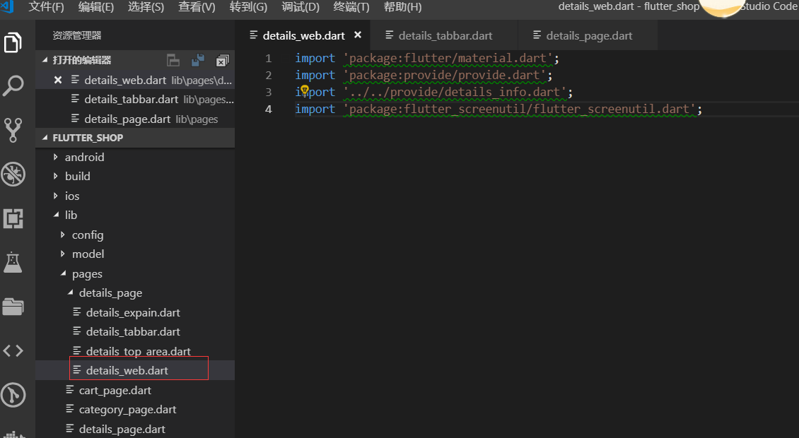 新建details_web.dart页面。把details_tabbar.dart里面的导入的包引入进来。