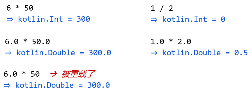 运算的结果保留运算符的类型,所以 1 / 2 = 0,但 1.0 / 2.0 = 0.5。