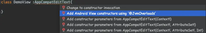 其实当我们自定义 View 时,AS 已经给了我们充分的提示,它会自动帮我们生成带@JvmOverloads 构造方法。