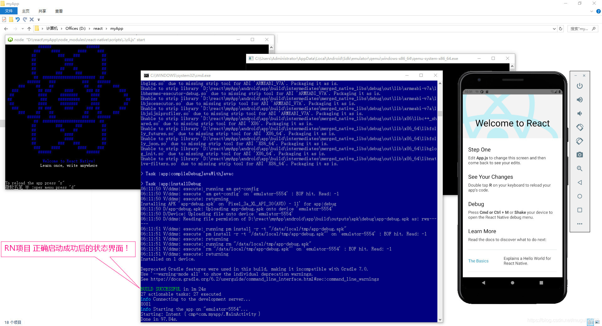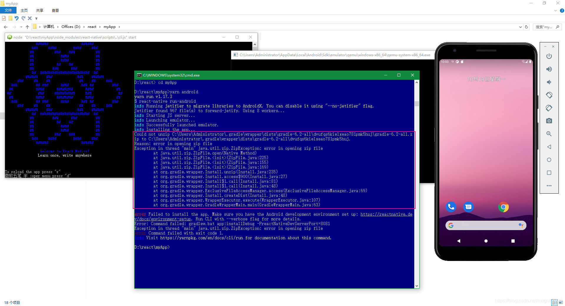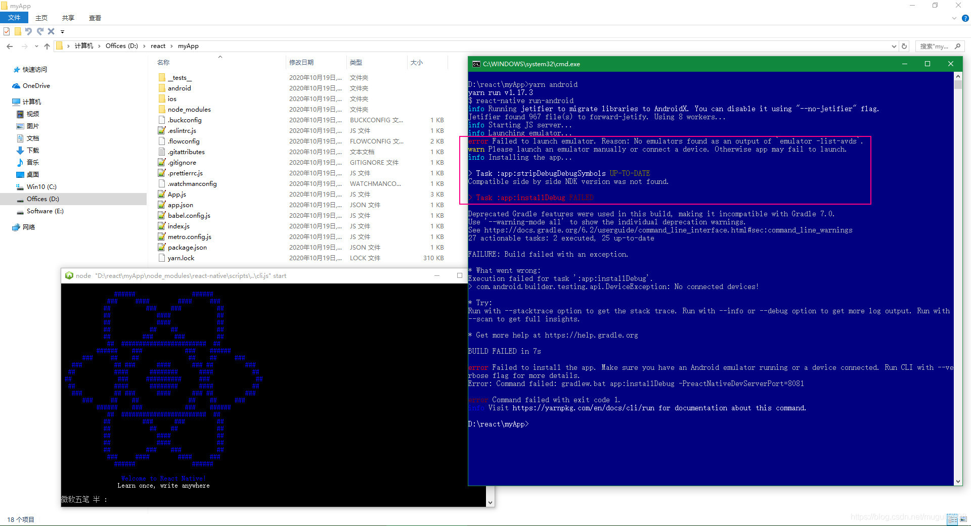 在Windows平台上搭建React Native环境,RN相关报错处理,yarn android启动不了等解决方案