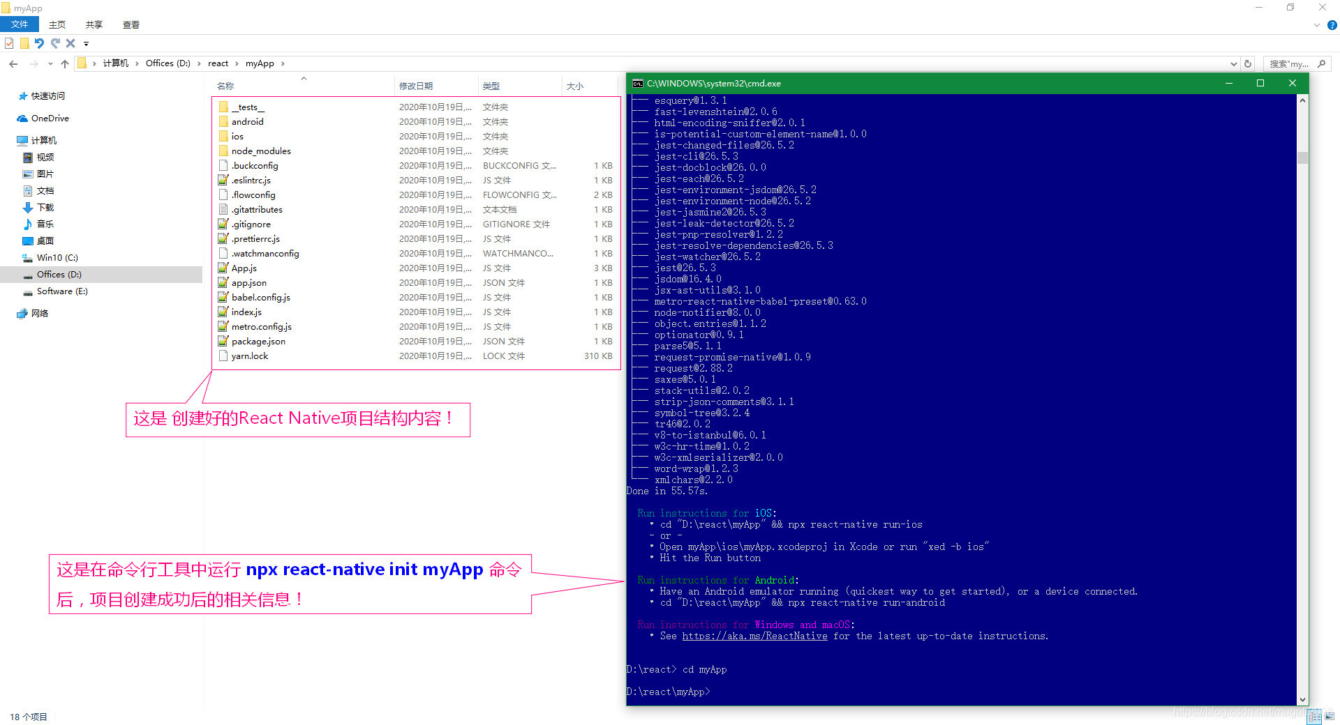npx react-native init myApp // 注:myApp是要创建的项目名称(是自定义的)!