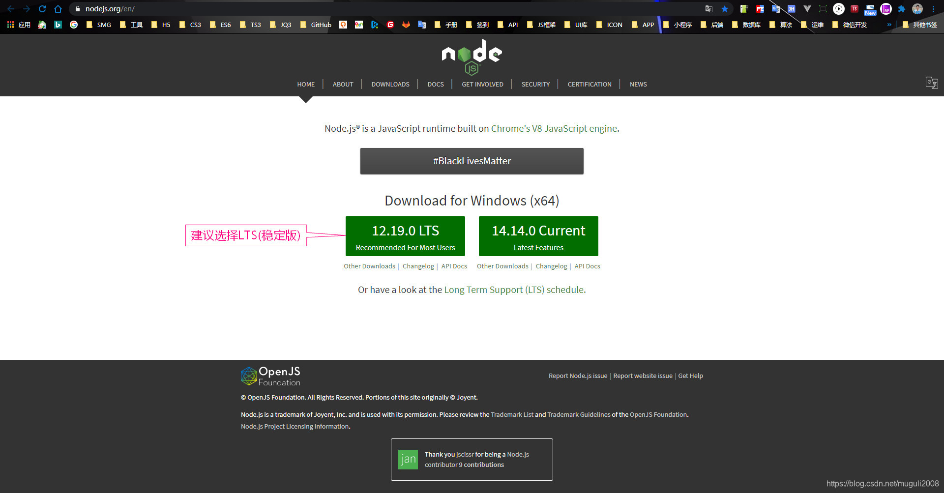1、安装Node.js环境,下载地址:https://nodejs.org/en/,建义选择LTS(稳定版)!下载完成安装即可,如果已安装Node环境此步就略过!!