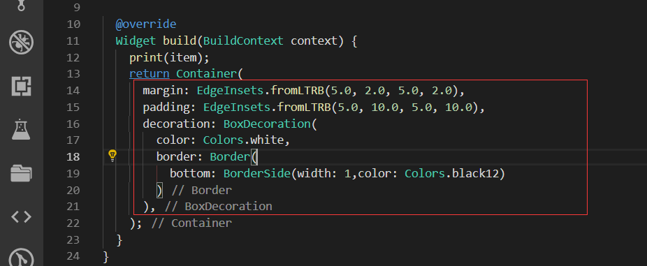 我们这里使用Row布局,把没一块都分成一个单独的Widget防止嵌套