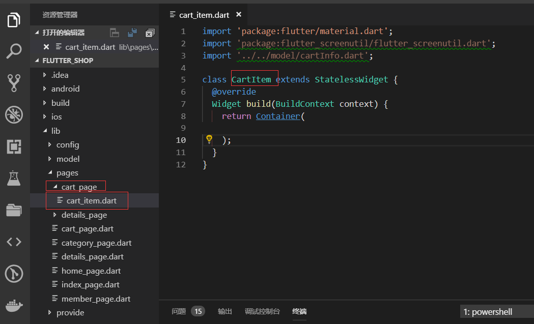 新建cart_page文件夹,在里面新建cart_item.dart页面,