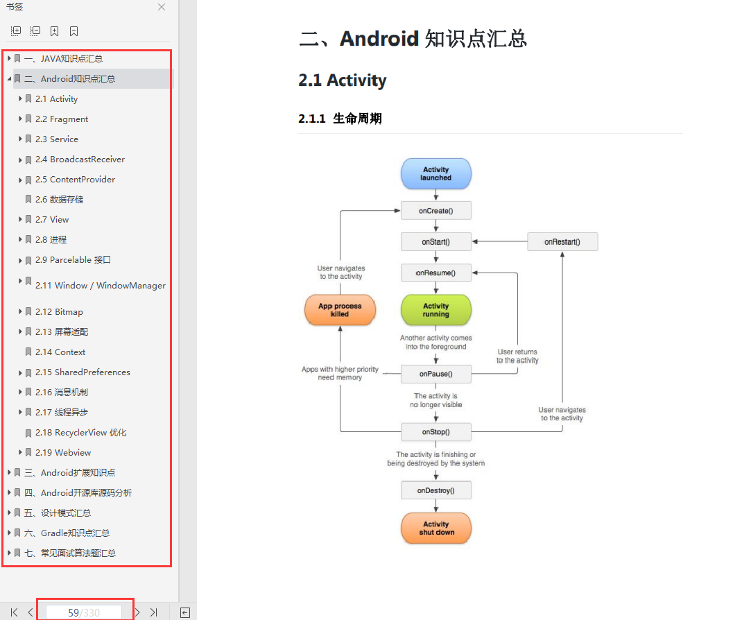 该成长曲线图是通过市场调查需求中整理出来的,都是现在Android开发市场流行的主流技术。在整理这份成长曲线图同时,还整理出了一份Android最新版的核心笔记,里面记录了Android基础到架构的知识点;本想在文章全部展现出来,但因文章篇幅长度限制,就只能用图片形式展示了,如需查看完整的目录获取文档和高清版的成长曲线图可以点击【Github地址】查看
