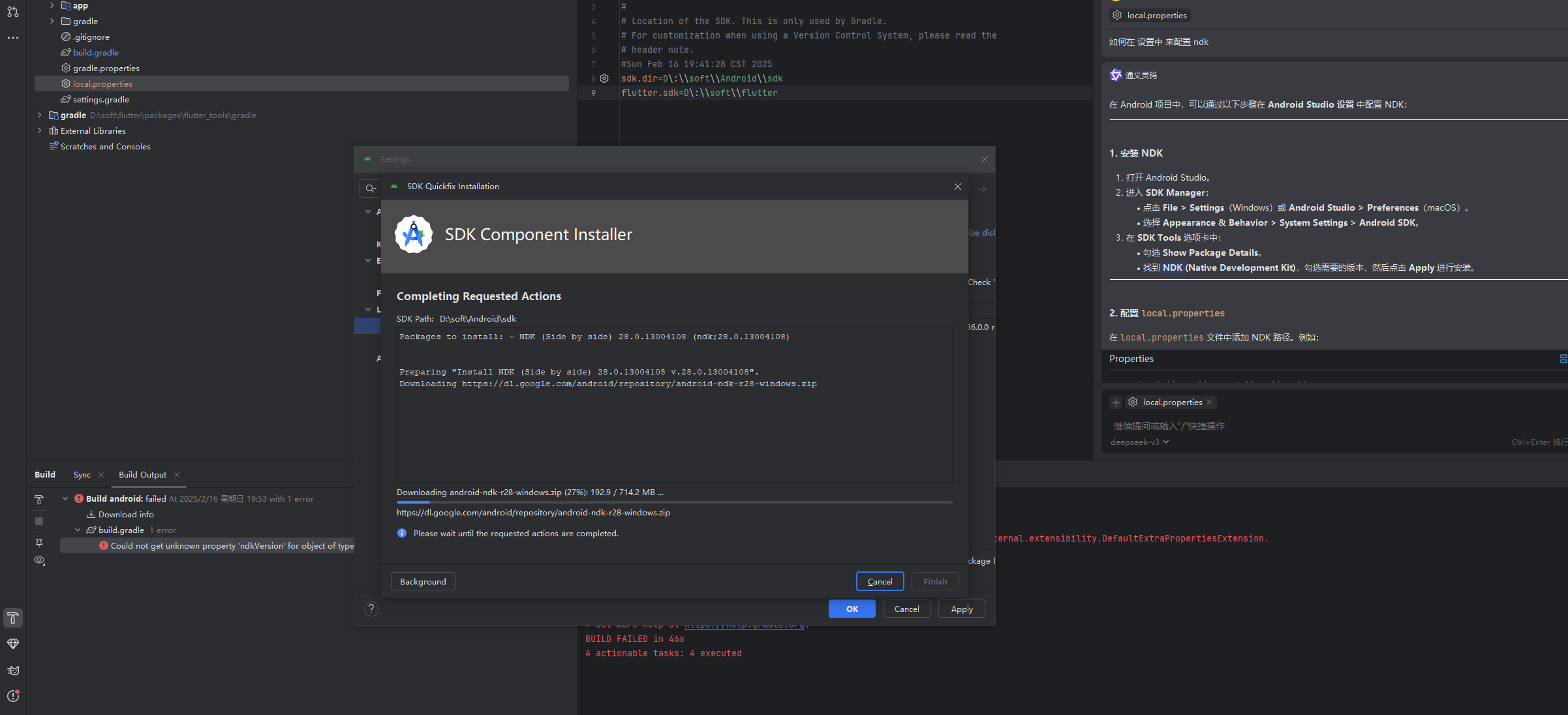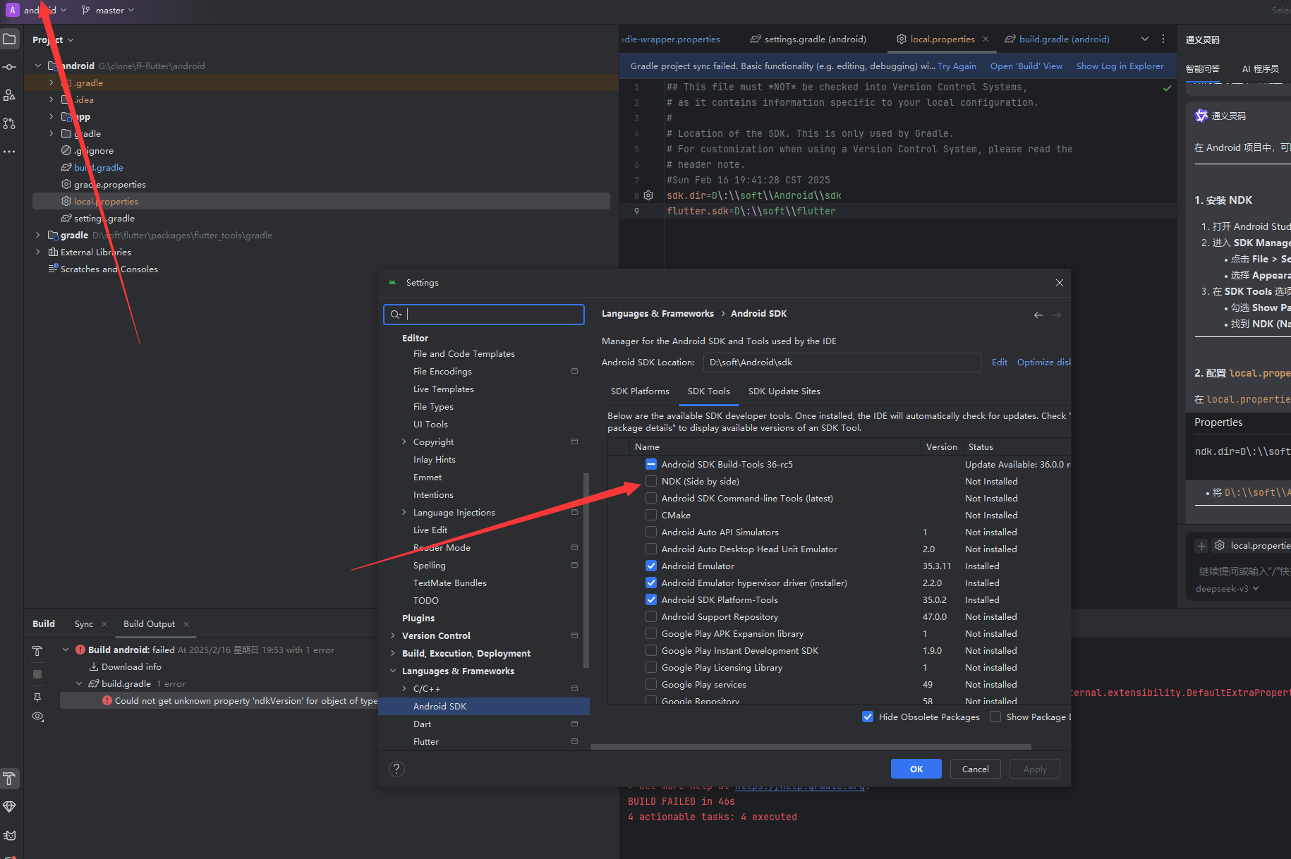 在 local.properties 文件中添加 NDK 路径