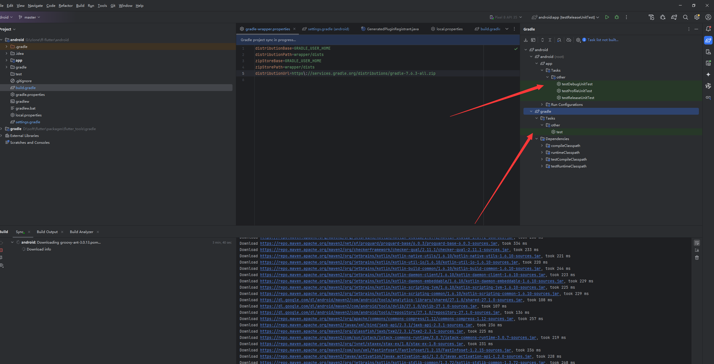 Could not determine the dependencies of task ‘:flutter_plugin_android_lifecycle:test’.