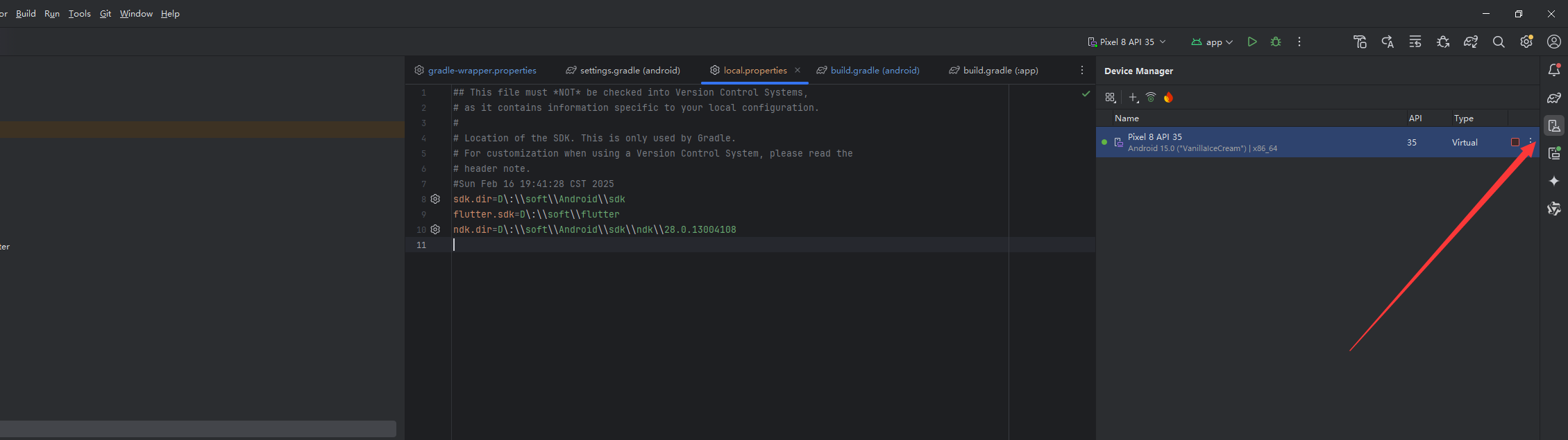 修改 这个 local.properties 文件,