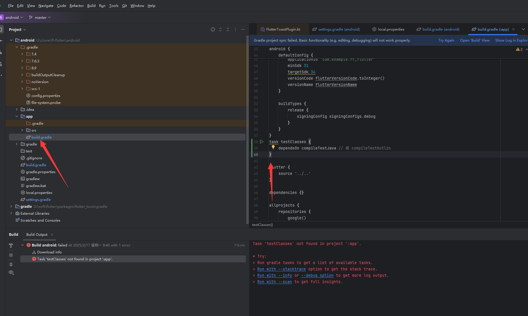 Task ‘testClasses’ not found in project ‘:app’.