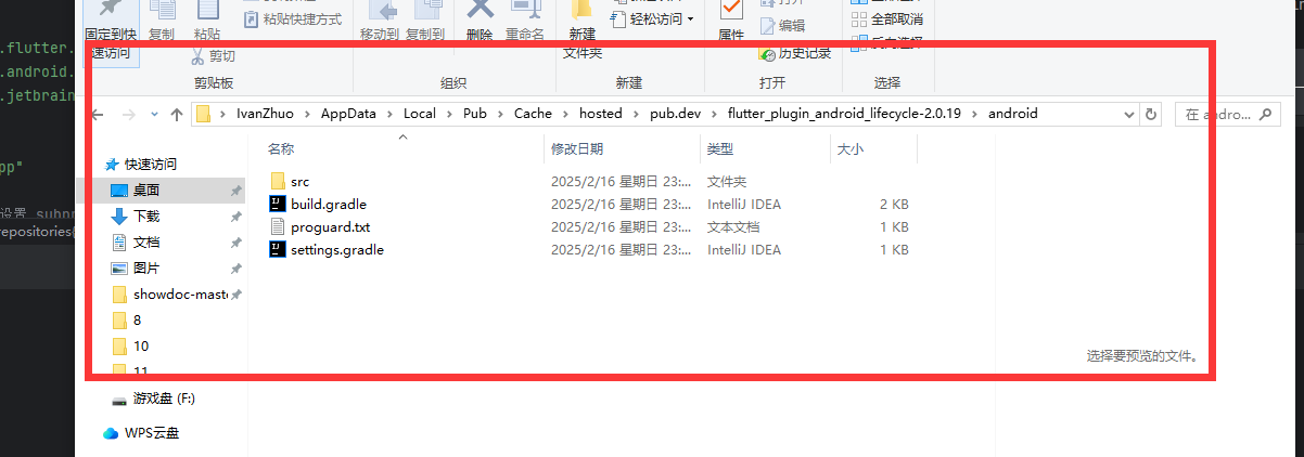 把缓存路劲 C:\Users\Administrator\AppData\Local\Pub\Cache\hosted\pub.dev\flutter_plugin_android_lifecycle-2.0.19\android 里面的内容 我复制到,