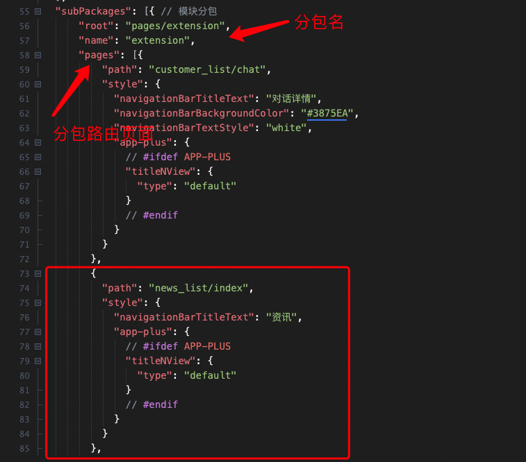 不存在模块需在subPackages中新增分包模块,在按照上一步进行创建页面路由。