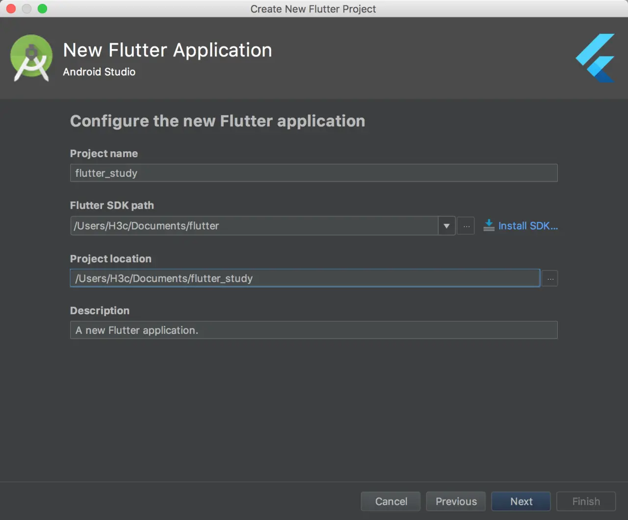 选中开始一个新的Flutter工程。