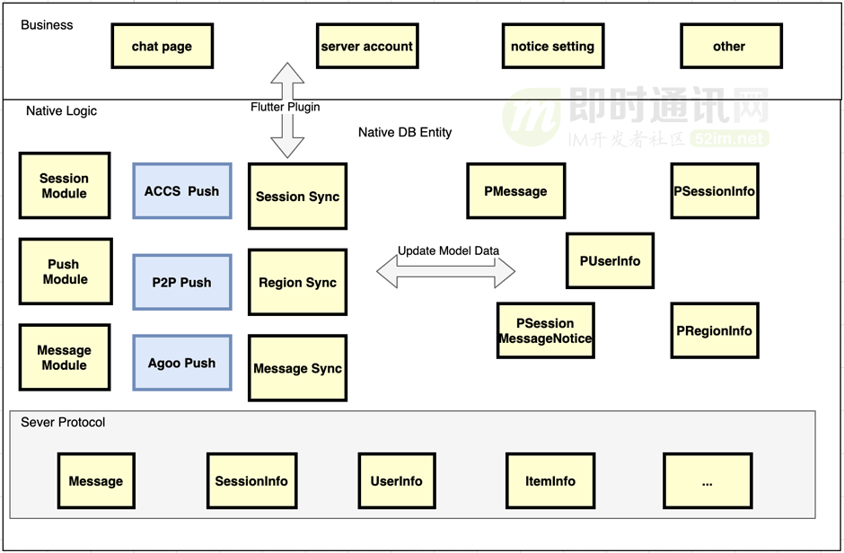 在基于Flutter的IM架构中,重点将双端逻辑差异性统一成同一份Dart代码,完全磨平Android/iOS的代码差异性带来的问题。